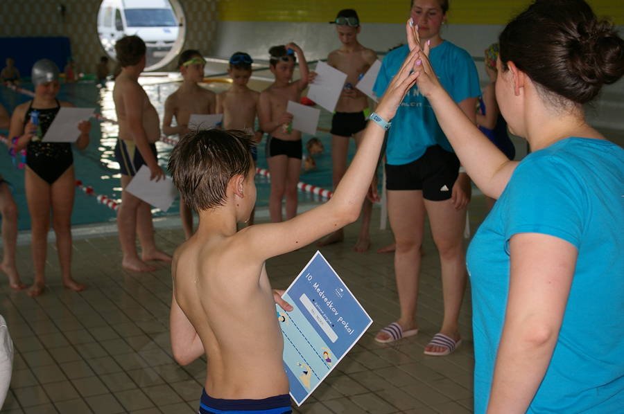 Medvedkov pokal je namenjen najmlajšim plavalcem naše plavalne šole, katero vodita Živa Dobrovoljc in Jan Uršič. Tekma poteka ob spremljavi njihovih trenerjev, s pravimi sodniki in merilci časa. Tako mladi plavalci lahko prvič doživijo čar prave tekme, saj na koncu prav vsi dobijo priznanje in sladko presenečenje. Številčno občinstvo staršev pa je tokrat zaradi varnosti lahko tekmo spremljalo iz zunanje strani bazena ob velikih steklenih oknih. Z glasnim navijanjem so dodali piko na i, tako da je bilo vzdušje res športno.
