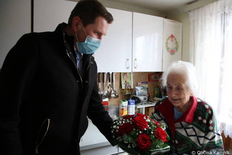 Popoldan je župan Matej Slapar skupaj s predsednikom Društva upokojencev Kamnik Vinkom Polakom iskreno čestital gospe Frančiški Česen, ki je na prvi dan novega leta praznovala 100. rojstni dan. Seveda so ji posebno pozornost namenili že njeni bližji, ki so se poveselili ob praznovanju njenega okroglega jubileja, v očeh gospe Frančiške Česen pa je bilo čutiti neizmerno veselje, ko ji je danes čestital tudi župan.