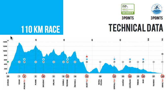 Ura je nekaj pred sedmo zvečer, Labin (Istra), močan veter, posamezne kaplje dežja … Vreme, kateremu ne bi bila kos niti lubica iz reklame za »draj veter taft«. Na štartu srečam Marjana Zupančiča, ki je lani iz zdravstvenih težav odstopil, bruhanje. Vesel sem družbe Primoža, Dominike in Alena, ki čakajo na štart ob enajstih zvečer na 110 km.