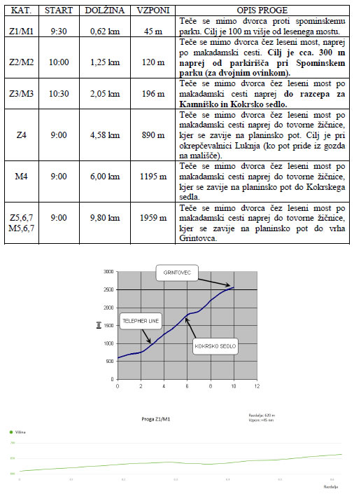 PROGE: Start vseh kategorij je v Kamniški Bistrici, pri Piknik centru pri Jurju. Proga je po celotni dolžini označena s trakovi, puščicami na papirju in kilometrskimi oznakami, ki kažejo oddaljenost od cilja. Na vseh pomembnih razpotjih so radarji in zapore s trakovi. V primeru slabega vremena si organizator pridržuje pravico do skrajšanja proge