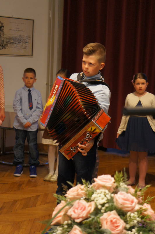 Vrabčki pod vodstvom Marine Aparnik pa so poslušalce prav razvneli. Prikupno so ob klavirski spremljavi zapeli Pomladno, Rajajmo, rajajmo, Polžev god in Glasba mi je vse. Najbolj pa sta zažgala brata Max in Matic Kotnik, ki sta iz vrabčjega gnezda odletela med harmonikarje, zaigrala sta Kiss me in Kranjsko dekle, pa še skupaj Lepote Kamnika.