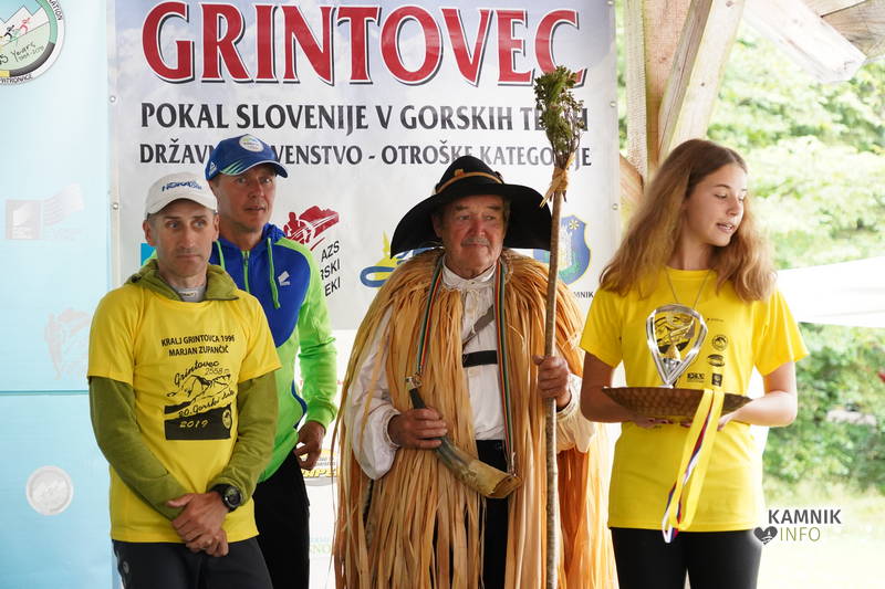 Kralj Grintovca 2019 Luka Kovačič in kraljica Mojca Koligar sta prejela posebno skulpturo, najstarejša tekača Olga grm in Marjan Rihtarič pa leseno mojstrovino; vse je izdelal Karol Mali, tudi sam tekač.