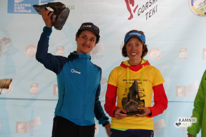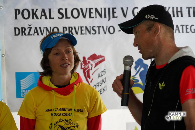 Kralj in kraljica Grintovca sta postala Luka Kovačič, s časom 46:51, in Mojca Koligar, ki je na Kokrsko sedlo pritekla v času 55:26, oba člana KGT Papež.