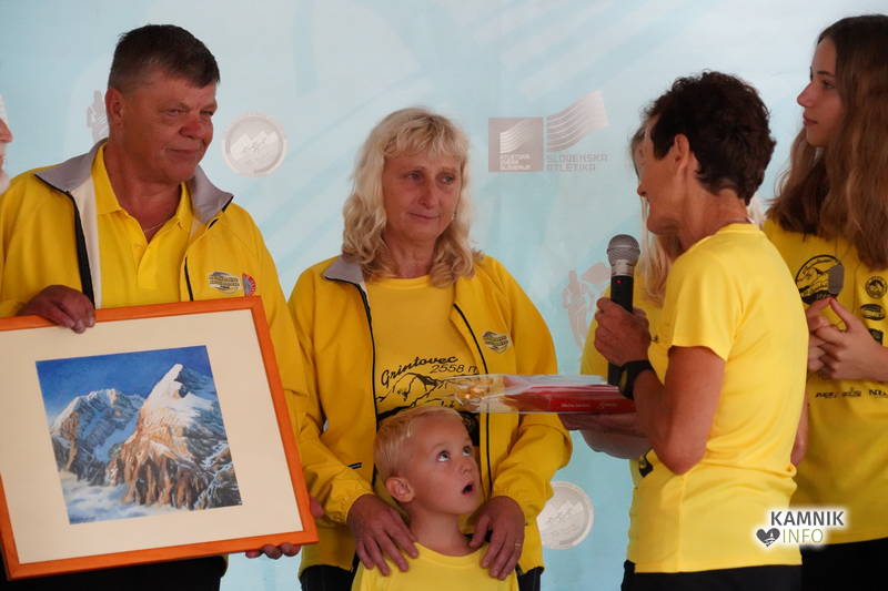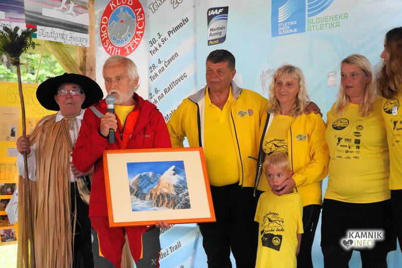 Ob zaključku je Cene Griljc Dušanu Papež in vsej zbrani družini v zahvalo podaril svojo umetniško sliko Grintovec, v imenu vseh tekačev pa je s spominskim darilom Miri zahvalila Olga Grm.
