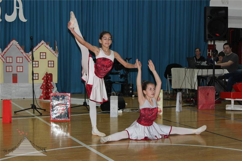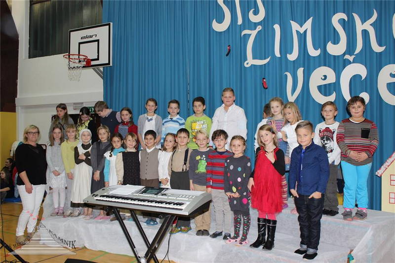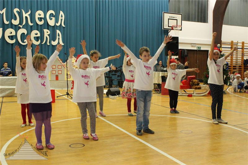 Zimsko vzdušje je nato dodatno pričaral otroški pevski zbor, devetošolka Kaja Rihar in njen soplesalec Nik Kardum, ki trenirata v Plesnem klubu Urška v Ljubljani, pa sta z dunajskim valčkom pridala še pridih svečanosti in elegance, nekoliko pozneje pa sta publiko razvnela še s plesom v ritmih ča ča ča. S prazničnim miksom so navdušili nadobudni plesalci prvega in drugega razreda, ki že od začetka šolskega leta plešejo v plesni šoli Miki, četrtošolka Karolina Ržišnik pa je dokazala, da je mojstrica ritmične gimnastike, saj je zaplesala tango kar z obročem. Pravi mojster je tudi šestošolec Toni Lah, ki se je predstavil s skladbo I’m in trouble, ki jo je napisal sam. Toni jo je sam zapel in zaigral na bas kitaro, na bobnih pa ga je spremljal Lan Kenda. Veselo vzdušje se je nadaljevalo z mladinskim pevskim zborom, ki je celotno dogajanje popestril s praznično obarvanimi skladbami, za nameček se je povezal še s šolsko folklorno skupino Verine zvezdice in skupaj so pokazali, kako lepo so se otroci zabavali nekoč. Prireditev se je končala tako, kot se za vesele dogodke spodobi – z diatonično harmoniko, na katero je zaigral Jernej Jaklič.