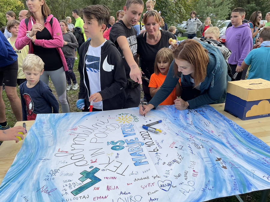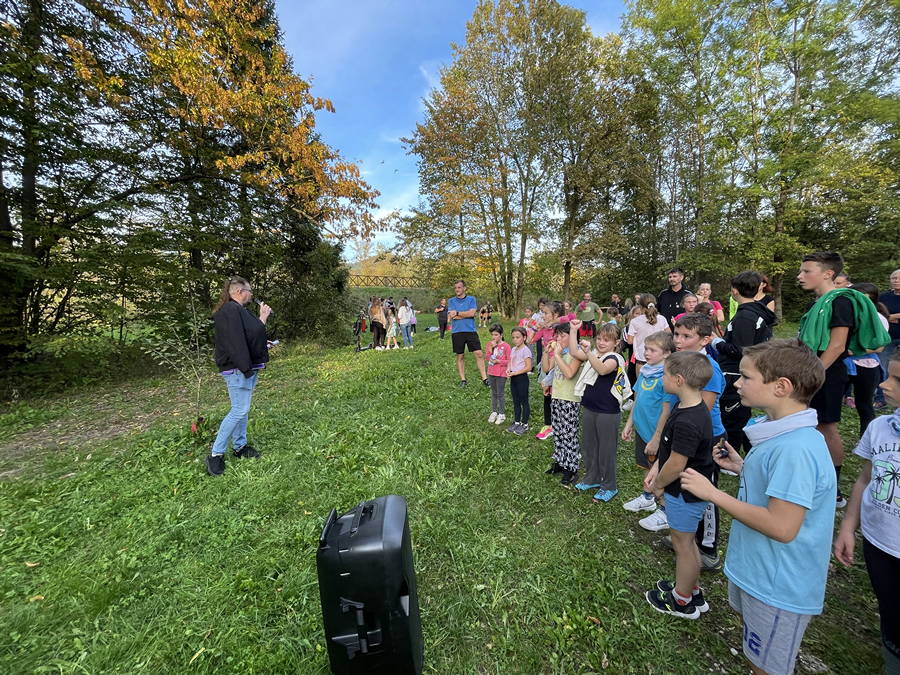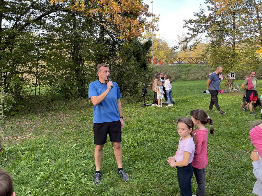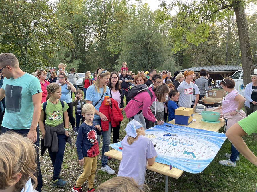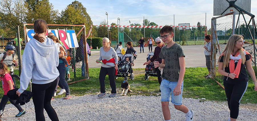 Po dveh letih, ko je življenje v veliki meri krojil nov virus, smo se letošnjo jesen lahko spet zbrali v Šmarci na igrišču pri športnem parku Virtus. Skoraj 300 učencev, staršev, dedkov, babic, učiteljev in vseh drugih, ki nam je blizu gibanje, kvalitetno in zdravo preživljanje prostega časa, smo se na čudovit jesenski dan ob glasbi in pod vodstvom naše učiteljice Petre najprej ogreli, nato pa se, nekateri hitreje, drugi počasneje podali na pot.