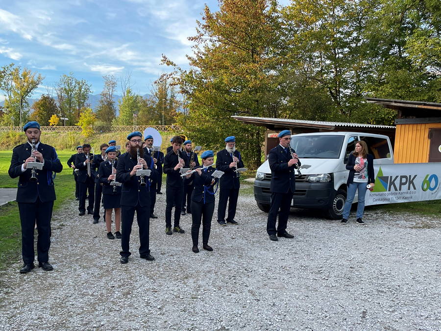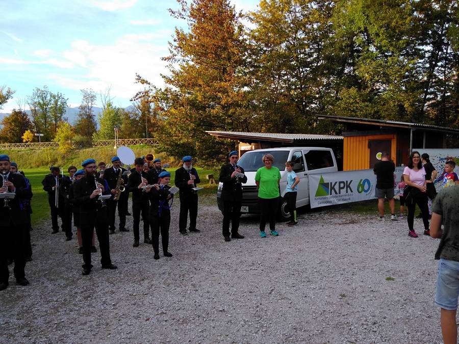V cilj smo prišli v ritmih Mestne godbe Kamnik, tam nas je čakal Kopko, postregli smo si s sadjem in zdravimi prigrizki, ki so jih za nas napekli učenci.
