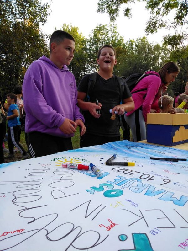 Plakat, na katerega smo se podpisali nas bo v šoli še dolgo spominjal na tek, poleg tega pa je vsak udeleženec prejel tudi večnamensko naglavno ruto oz. bandano z logom našega teka in pohoda. Ta nas bo grela v hladnih jesenskih in zimskih dneh, ki so pred nami.