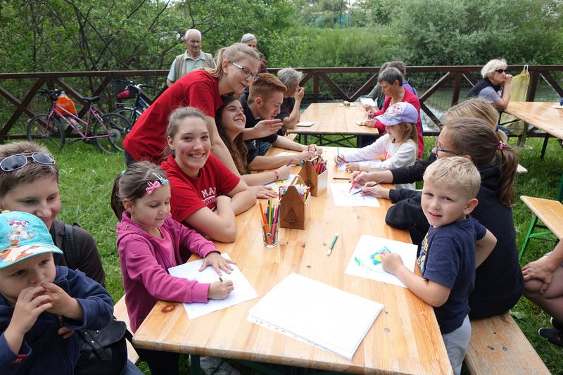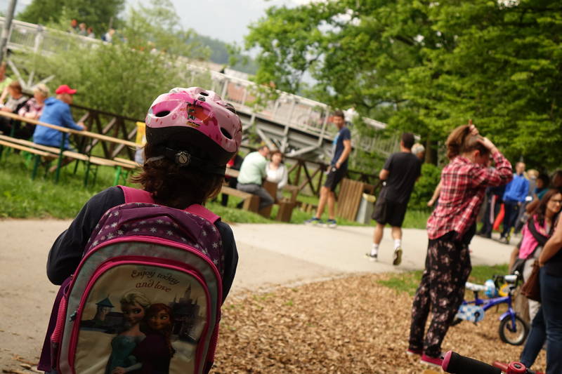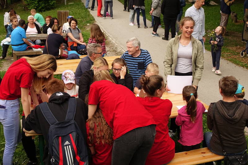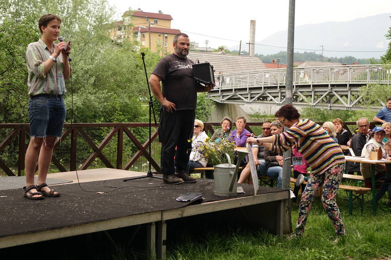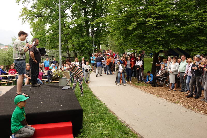Otroci so letos sicer nekoliko pogrešali gorske reševalce, ki so jih prejšnja leta prek Bistrice atraktivno prevažali z vrvno žičnico, ampak ob obilici drugega dogajanja, ki se je odvijalo na obeh bregovih, so se kaj hitro zamotili z drugimi dejavnostmi, denimo z igrico, ki so jo pripravile dijakinje Gimnazije in srednje šole Rudolfa Maistra.