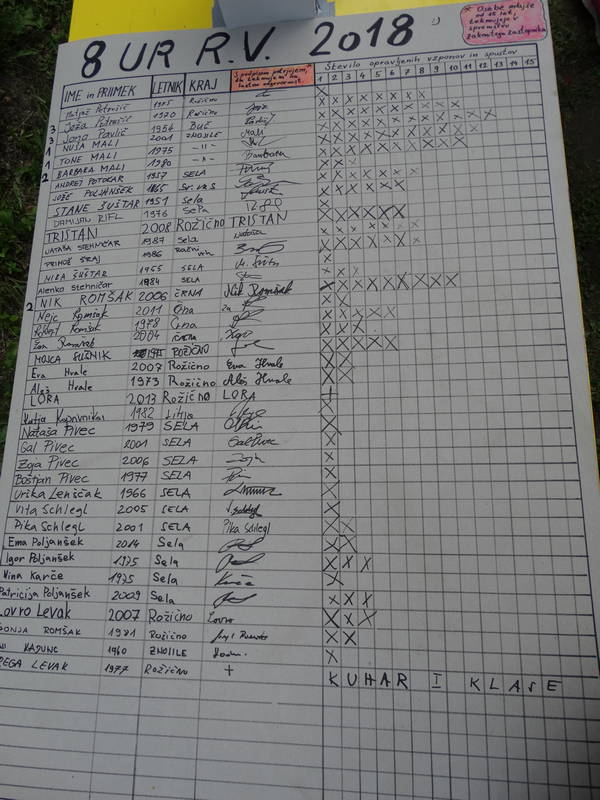 Letošnjega 8-urnega obiskovanja 794 metrov visokega Rožiškega vrha se je udeležilo 39 tekmovalcev, največ domačinov, nekaj pa tudi pohodnikov od drugod. Vrh je bil oblegan vse od majhnih otrok, do tudi malo starejših, ki z uspehi dokazujejo, da so še vedno v odlični formi.