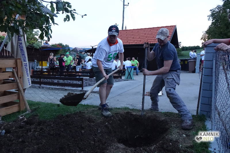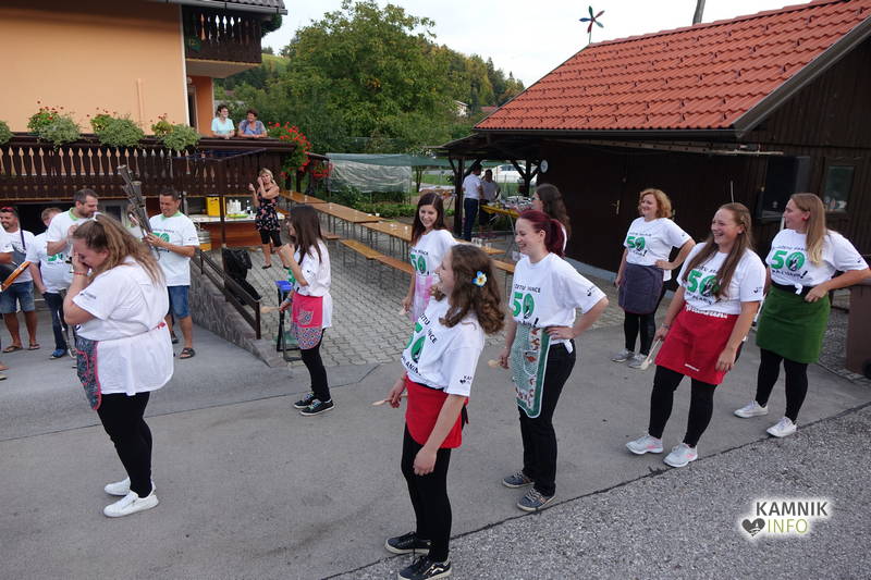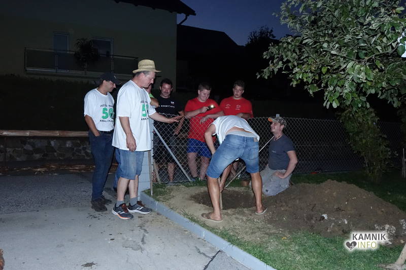 Proslavljanje okroglih obletnic, še posebej srečanja z Abrahamom, pa seveda ne mine brez postavljanja mlaja, ki je bilo tokrat, zavoljo njegove košatosti in višine, še posebej pa zaradi nevarne bližine električnih žic, na trenutke kar precej adrenalinsko.