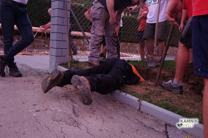 Če je še sprva kazalo, da bo mlaj postavljen bolj pozno oz. šele okrog polnoči, saj je, zavoljo odlične pogostitve, na trenutke skorajda primanjkovalo delovne sile, ki se je, bržkone v dobrobit nabiranja moči, spočetka bolj posvečala hrani in pijači, kot pa lupljenju mlaja, se je mlaj proti večeru, predvsem po zaslugi najprizadevnejših delavcev, duhovito odločnega delovodje in medsosedske pomoči z gradbeno mehanizacijo, vendarle ponosno usločil nad slemeni zagoriških hiš.