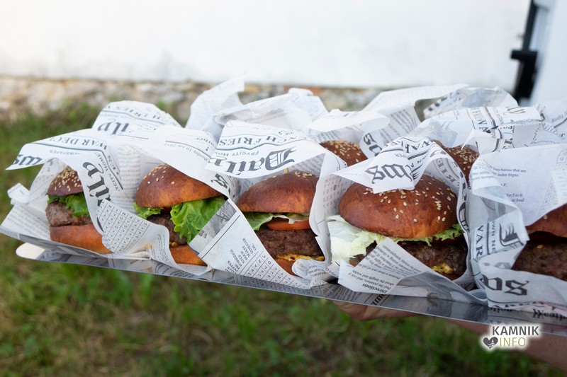 Teh, pravi, si Noah želi in jih pogreša, vendar se je pripravljen zadovoljiti z navadnimi, slovenskimi palačinkami, včasih pa si visoke, rahle in napihnjene palačinke pripravi kar sam. No, na današnjem dogodku žal palačink, niti slovenskih niti ameriških ni bilo, bila pa je prava ameriška hrana in pijača, ki se je konzumirala tudi na pravi ameriški način. Sicer jih niso pripravljali Američani, je pa gostilna Repnik zbrane pocrkljala s hamburgerji in kokakolo, vse skupaj pa so dobili za “po peš” oziroma po ameriško “take-out”.