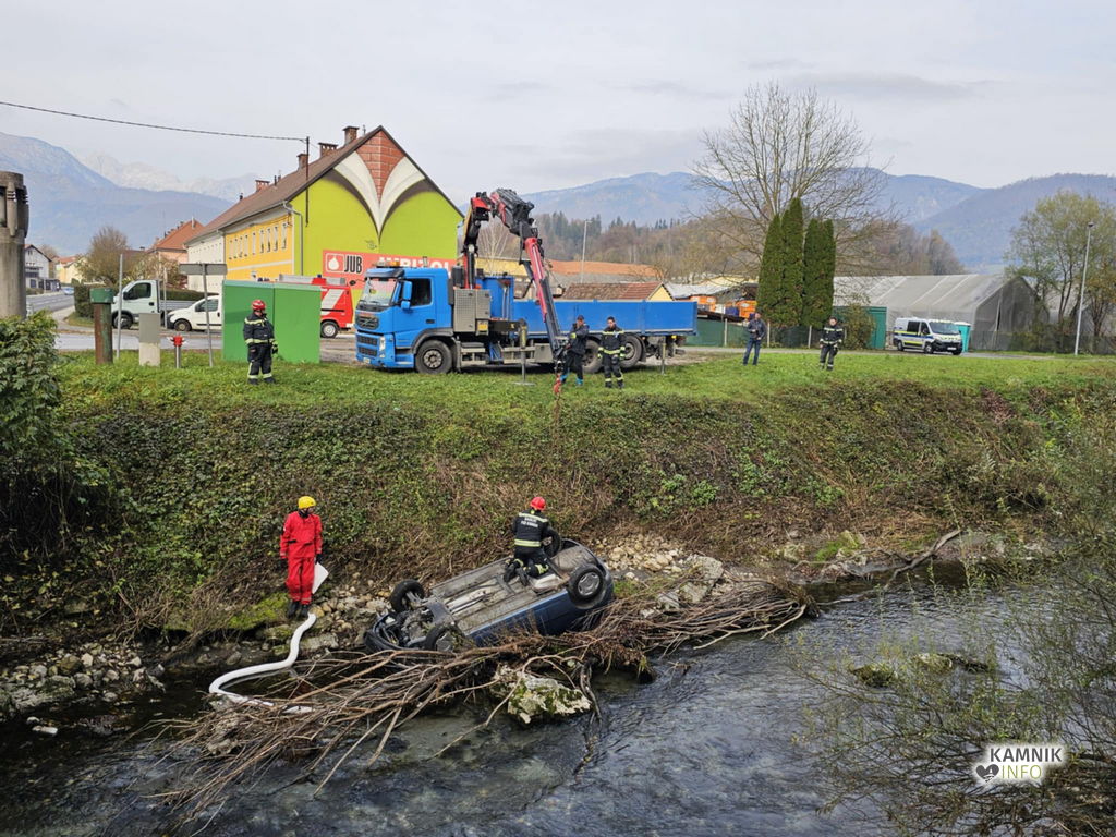 Gasilci so priskočili na pomoč starejši voznici, ki ji je vozilo pobegnilo v reko Nevljico.
