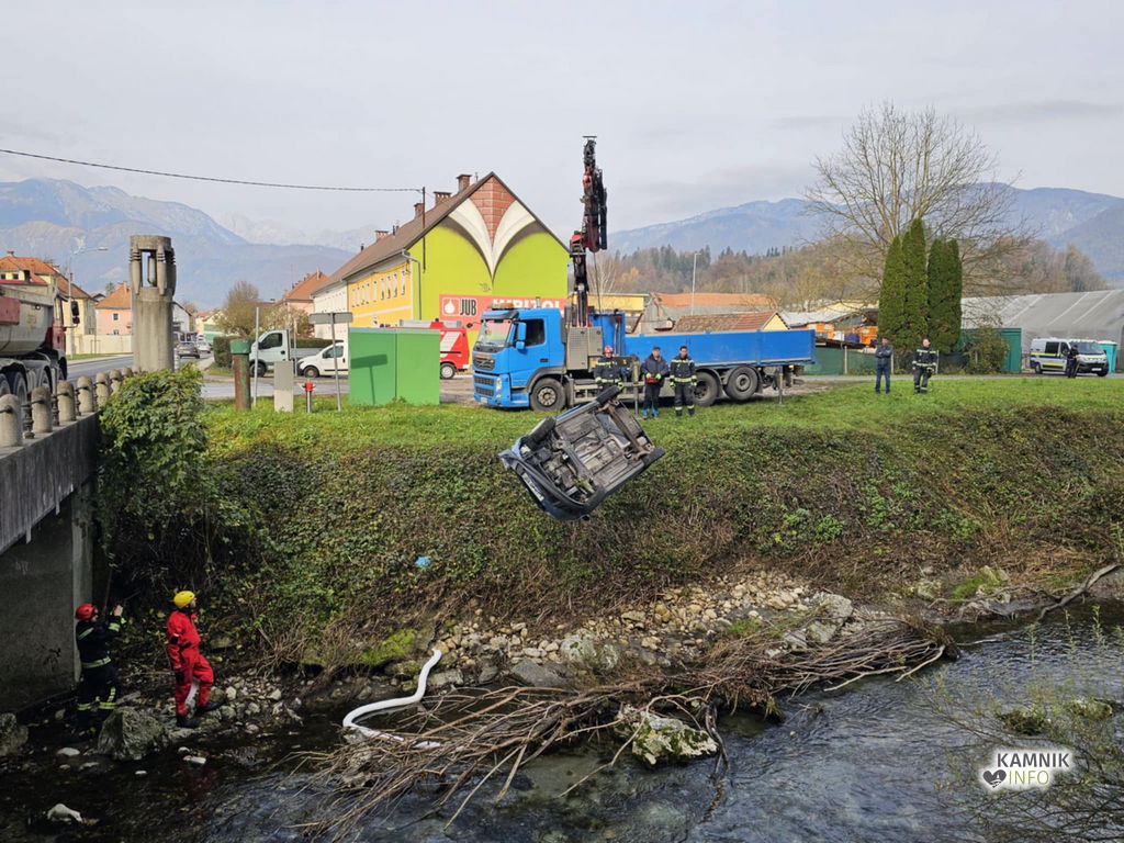 Včeraj, nekaj po 11. uri dopoldne, so bili gasilci obveščeni, da se v reki Nevljici, v neposredni bližini Plečnikovega mostu na Cankarjevi cesti, nahaja prevrnjeno osebno vozilo.