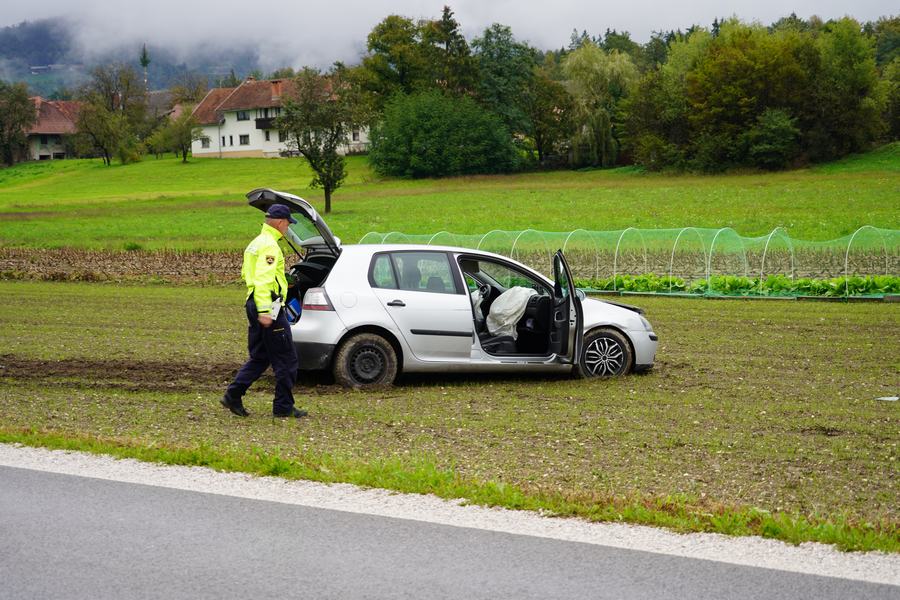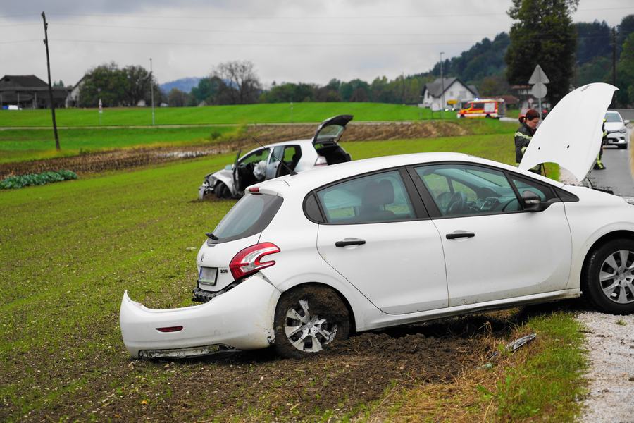 Po trčenju sta obe vozili zleteli s ceste in obtičali na bližnji njivi, k sreči pa v nesreči, razen pločevine in razritih jesenskih posevkov, ni bil nihče poškodovan.