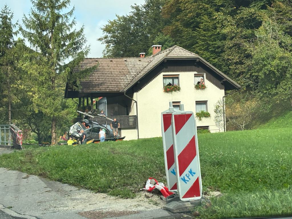 Ker avtomobilska asistenca tekom intervencije ni zagotovila ustreznega avtodvigala, je dodobra razbito vozilo do jutranjih ur ostalo v potoku, samo prizorišče pa je bilo zavarovano s trakom.
