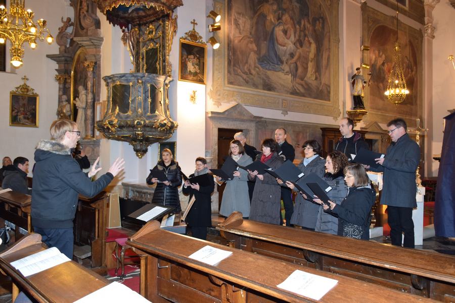 Domači zbor, ki ga od oktobra naprej vodi Dušan Ješelnik, je za ta večer pripravil dve skladbi skladatelja Lojzeta Mava, ter pesem Josipa Šterbenca. V goste smo tokrar povabili Ženski pevski zbor Perunike z zborovodjo Brigito Gregorčič Lenarčič, Vokalno skupino Adan Ravbar pod umetniškim vodstvom Petra Pogačarja, Mešani pevski zbor župnije Komenda z zborovodjo Petrom Grumom, Ženski pevski zbor Jutro iz Ihana pod taktirko Luka Štiftarja, ter pevce najstarejšega pevskega društva na Slovenskem Lira, katerega že od leta 2000 vodi prof. dr. Andrej Misson. Ne glede na to, kateri izbor pesmi je bil posameznemu obiskovalcu bližji, pa verjamem, da so srca enako goreče vztrepetala, ko je v cerkvi zadonela skupna pesem BODI NAM POZDRAVLJENA.