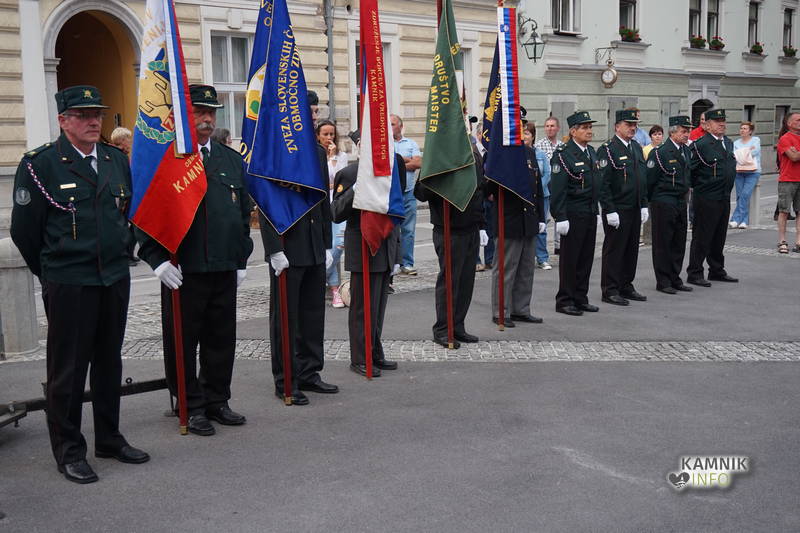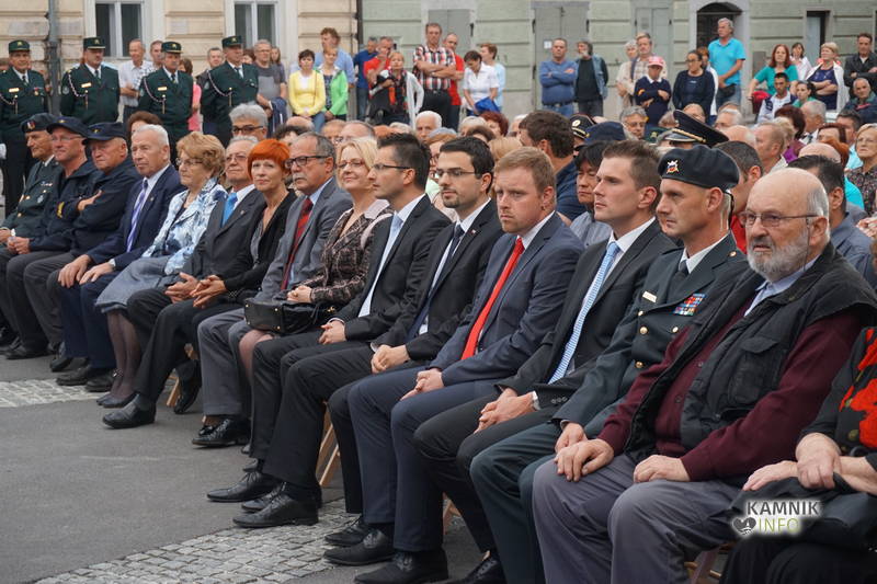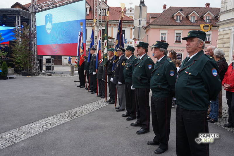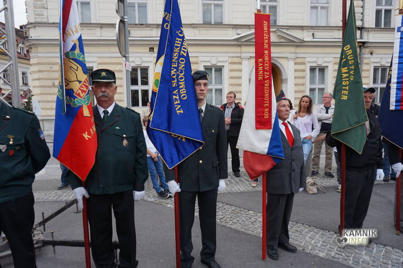 S prihodom praporščakov lokalnih veteranskih in domoljubnih organizacij, se je proslava začela z zvoki himne v izvedbi Mestne godbe Kamnik, prisotne pa je najprej nagovoril predsednik Območnega združenja veteranov vojne za Slovenijo Kamnik-Komenda mag. Zvonko Cvek, ki je v svojem odločnem nagovoru opozoril na pomen dejanj iz preteklosti, ki so pripravila pot in olajšala osamosvojitev, ob tem pa kritično okrcal politiko in politike, ki se napajajo z delitvami, izkoriščanjem bolečih spominov iz preteklosti ter si pojem demokracije, v prepričanju svojega edinega prava, razlagajo povsem po svoje.