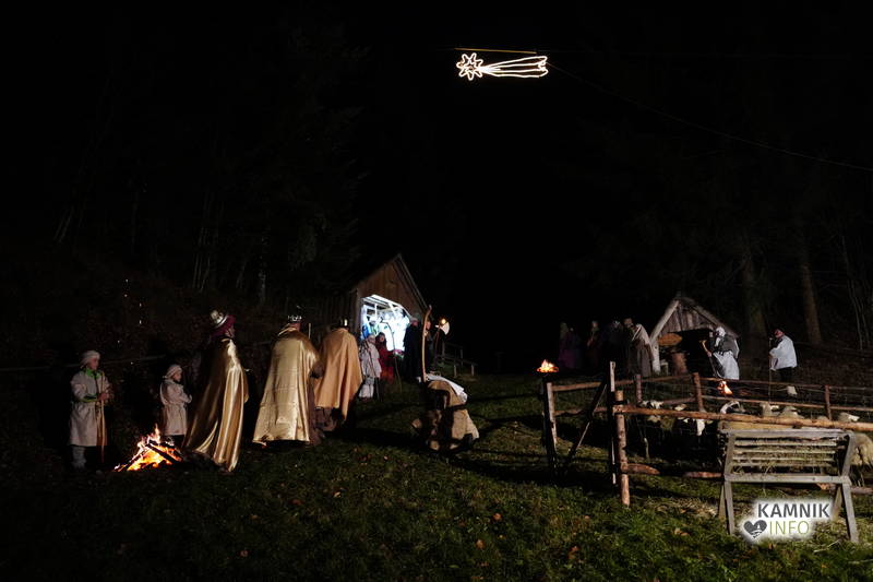 Marljivi člani Turističnega društva Tuhinjska dolina so v Bizjakovih dolinah pri Termah Snovik sinoči znova uprizorili simpatično božično zgodbo z živimi jaslicami.