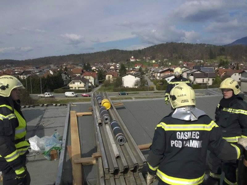 Po prihodu na kraj so gasilci PGD Kamnik povzpeli na streho ter odstranili potencialno nevarne dele, jih pričvrstili in zahtevali, da na kraj pride tudi podjetje, ki opravlja dela na strehi, da pregleda situacijo.