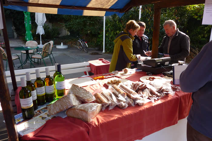 Ker je sv. Martin domala pred vrati in iz vode že nastaja vino, so bili tokratni gostje kamniškega tržnega dne predstavniki Izletniške kmetije in vinogradništva Šenveter iz iz občine sv. Ana v Slovenskih goricah, ki so, poleg izvrstnih vin, ponujali nič manj slastno tlačenko in domače klobase.