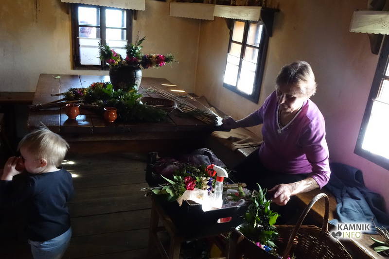 Da stara navada izdelovanja butaric ne bo utonila v pozabo, sta v »hiši« Budnarjeve domačije poskrbeli Bernarda Kvas in Fani Sovinšek, ki sta obiskovalcem z veseljem pokazali kako se butarice delajo v naših krajih.