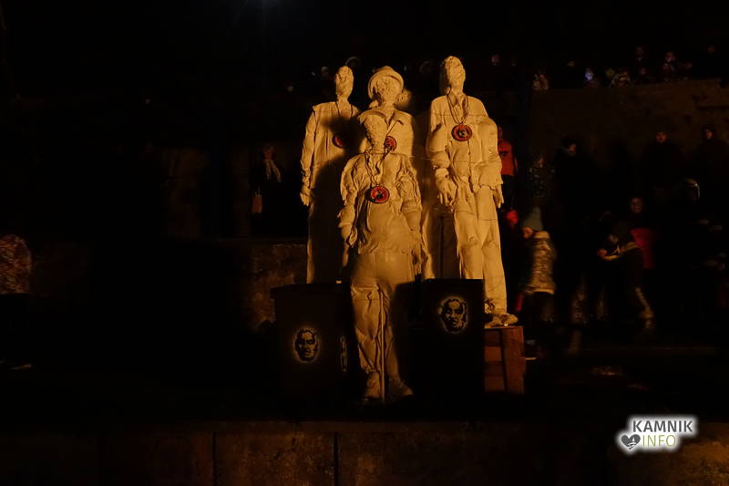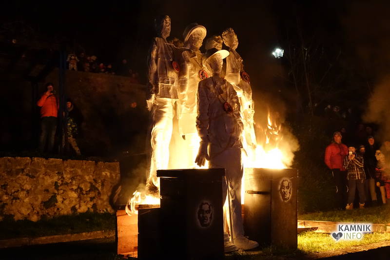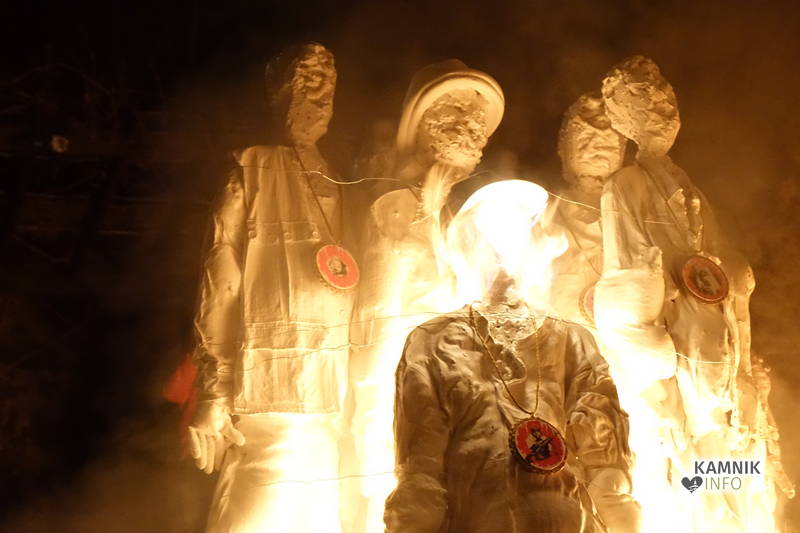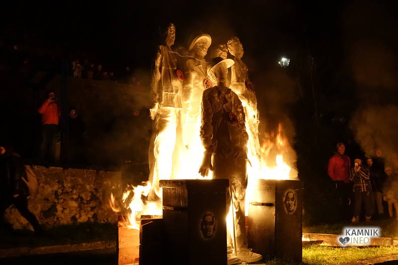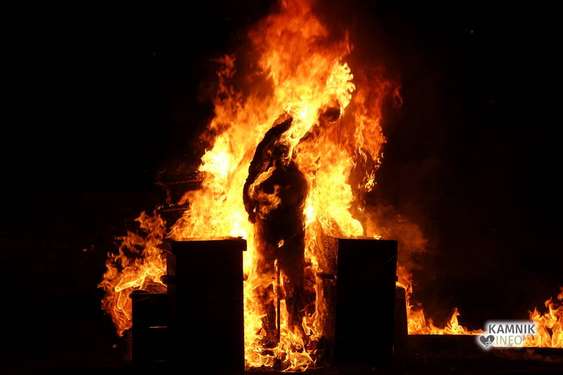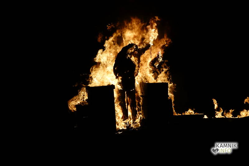 Svojevrstno pesem ptiča Feniksa so sinoči odplamtele in odprasketale tudi štiri goreče skulpture, od skromno gorečega Anjinega ognjenega cveta, do razpadlo razplamtelega skrajnega nacionalista izpod rok mednarodnih prostovoljcev, Goranove goreče omare okostnjakov, med katerimi so bile, poleg vsega drugega, tudi njegove, domala legendarne (pre)kratke hlače, ki so nemalokrat vzbujale tudi zgražanje, do junaško plameneče skupine z medaljami ovešenih veljakov, ki je opomnila, da morda tudi po naši krivdi, nekje na tem svetu v istem trenutku, ne le simbolično, ampak zares gorijo tudi živi ljudje…