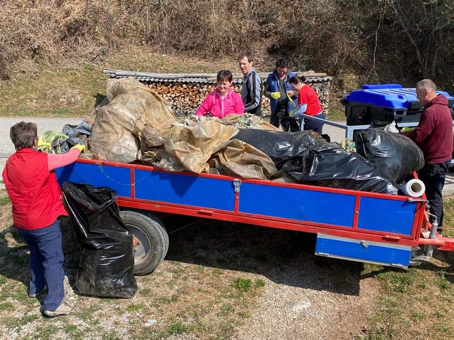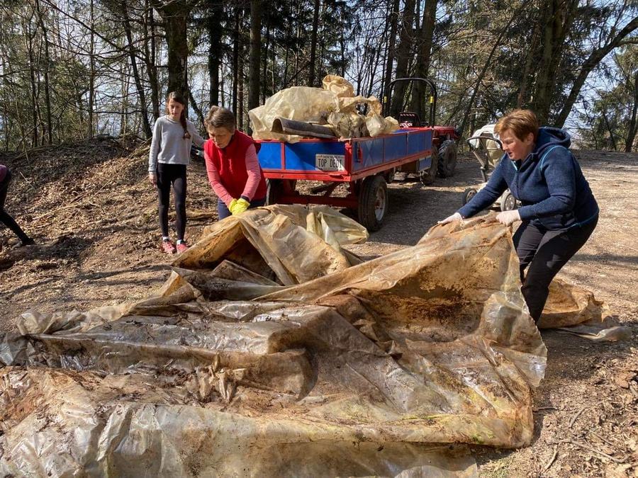 V sobotnem dopoldnevu smo torej očistili pot proti Gozdu, ki se očitno nekaterim mimovozečim zdi imenitno odlagališče embalaže od malice, pospravili črno odlagališče pod Vovarjem, končno odstranili polivinil na Jevševcu in ostanke baliranja na koncu vasi (proti Godiču).