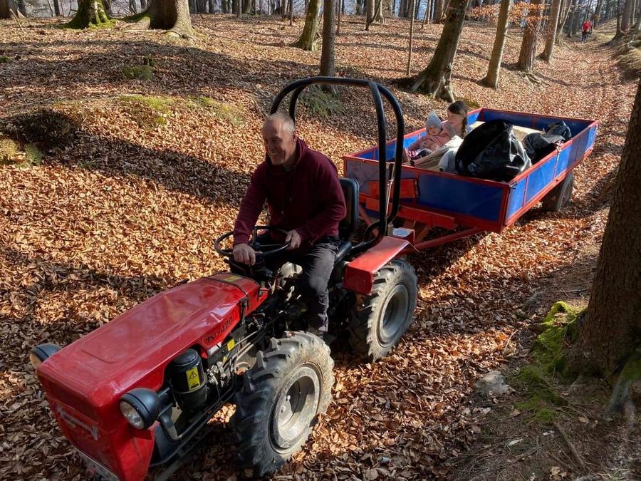 Vse to smo naložili na traktor, ki ga je suvereno upravljal Bojan Zvržina. Vsako pravo delo se seveda konča z likofom. Tudi naše se je in z ugotovitvijo, da se tiste prave spremembe začnejo dogajati v majhnih, lokalnih okoljih in da je fino opreti se na lastne roke in delovati v korist skupnosti.