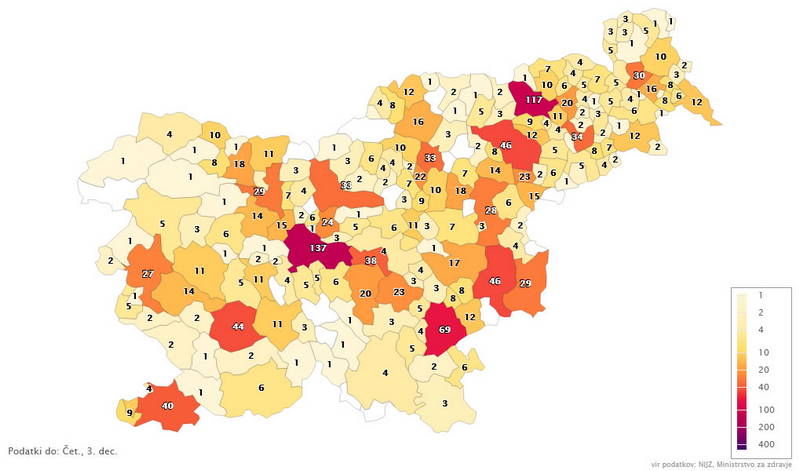V zadnjih treh dneh so bile nove okužbe potrjene tudi med prebivalci sosednjih občin, podatke lahko razberete iz priloženih grafik sledilnika COVID-19, vse pa kaže na to, da epidemija niti najmanj ne pojenjuje, vsak dan pa v naši državi umre za več kot en avtobus oseb.