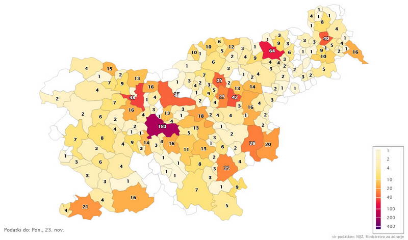 - Nove okužbe 23.11.2020 – Vir: Sledilnik COVID-19