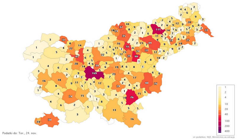- Nove okužbe 24.11.2020 – Vir: Sledilnik COVID-19