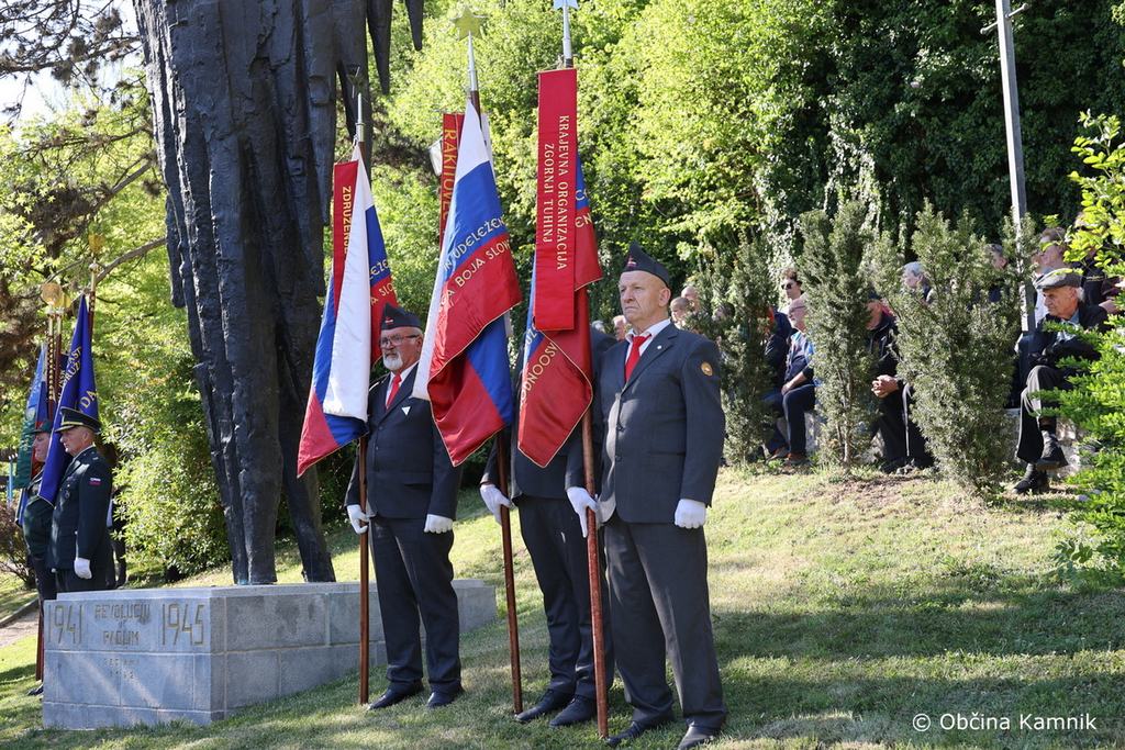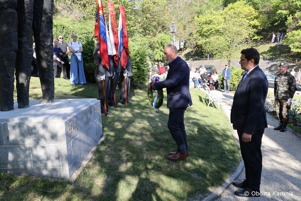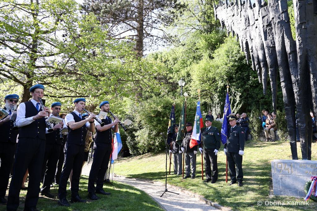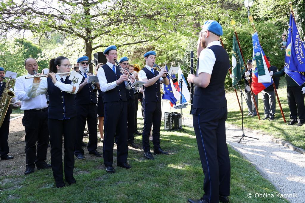 Z nastopi in prisotnostjo so slovesnost v počastitev današnjega Dneva upora proti okupatorju obogatili Mestna godba Kamnik, Rok Šinkovec, Goran Peršin ter praporščaki.
