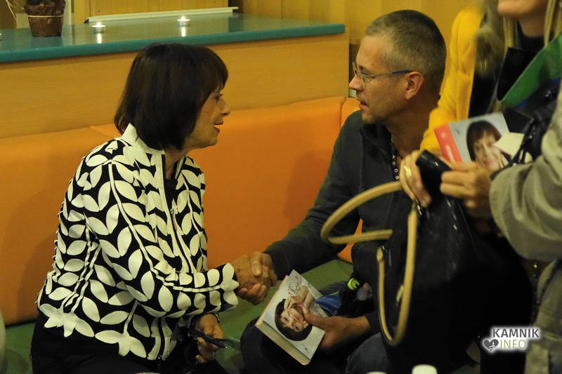 Zato ni nič nenavadnega, da se je večina prisotnih v avli knjižnice, skupaj z gostjami večera, rade volje zadržala še dolgo po koncu pogovornega večera. K še bolj prijetnemu ter sproščenemu druženju in klepetu ob podpisovanju knjige, je izdatno pripomogla tudi pogostitev, ki jo je, ob strežni pomoči knjižničark, »častilo« podjetje Mogy oz. zakonca Ivan in Mojca Zrimšek, ki sta Manci Košir pripravila tudi prijetno presenečenje v obliki okusne torte z njeno podobo, tako da so imeli udeleženci sinočnjega pogovornega večera svojevrstno priložnost, da se, skorajda dobesedno, Mance Košir naužijejo domala do sitega.