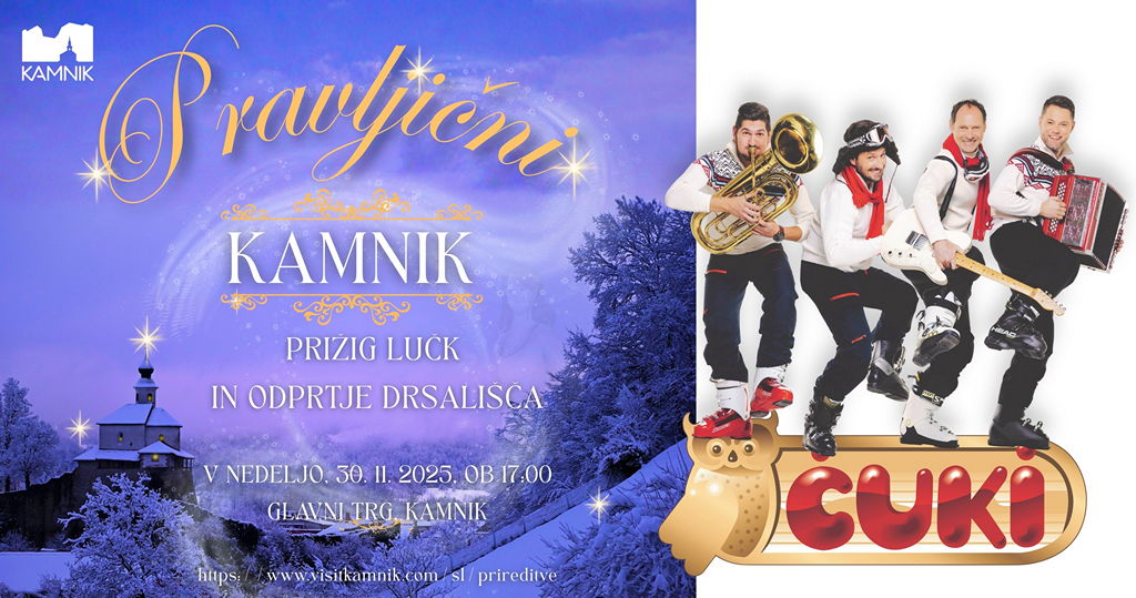 Sledilo bo veselo odprtje mestnega drsališča z nastopom legendarnih in priljubljenih Čukov. S tem bomo zakorakali v prireditve v okviru Pravljičnega Kamnika, ki ga tudi letošnje leto za vas pripravljamo Zavod za turizem in šport Kamnik in Občina Kamnik.