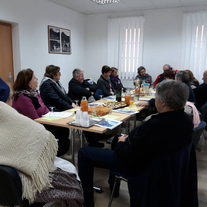 Na desetem, jubilejnem, občnem zboru smo se člani društva zbrali v nedeljo, 20. januarja, ob 15.00 uri, v stavbi nekdanje občine, v lepem prenovljenem prostoru, ki je tudi nekoč služil za sestanke krajevnih institucij, volitve in za prireditve v kraju. Občni zbor je vodil Valentin Zabavnik, zvesti član našega društva. Po začetnem pozdravu in izvolitvi organov zbora so sledila poročila predsednice društva, tajnika, blagajnika in nadzornega odbora. Vsa poročila so bila sprejeta, tudi razprava ob podanih poročilih je bila zanimiva.