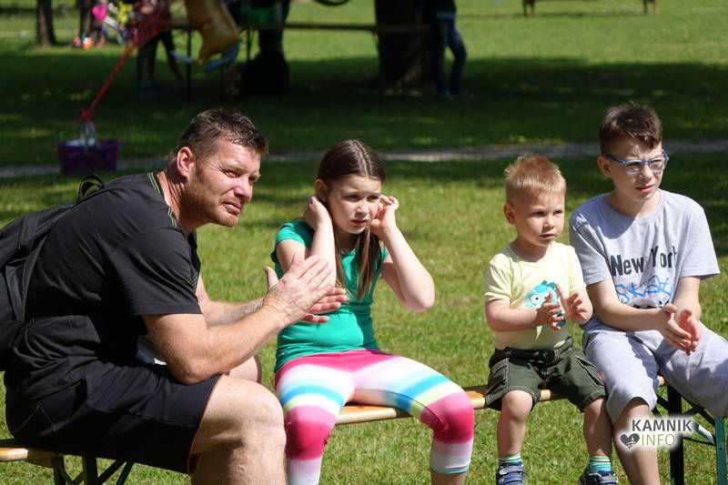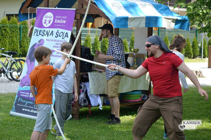 Jutranji in dopoldanski utrip veselega družinskega druženja v Keršmančevem parku, kjer je bilo moč danes dopoldne uživati tudi ob domačih dobrotah tržnice Okusi Kamnika, je s svojim nastopom poživila Manca Berlec, otroci iz vrtca Peter Pan, učenci podružničnih šol Šmartno v Tuhinju ter plesnega kluba Šinšin, otroci pa so se razveselili tudi nastopa čarodeja Joleta Coleta.