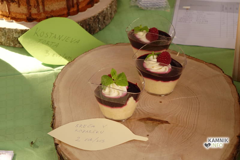 Razveseljivo je, da je bilo med ponudniki, razen starih znancev kamniške tržnice, tokrat moč najti tudi nove. Prvič se je na kamniški domači tržnici predstavila stojnica Mojčinih dobrot, ki je bila polna lično izdelanih in nadvse okusnih sezonsko obarvanih slaščic. Darja Pirš in Mojca Potočnik sta namreč obiskovalcem tržnice ponudili zanimivo izbiro slaščic, od bučne, ajdove in kostanjeve torto, pa do domiselno oblikovanih manjših sladkih pregreh, ki so se mimogrede prav imenitno prilegle k dopoldanski kavi.