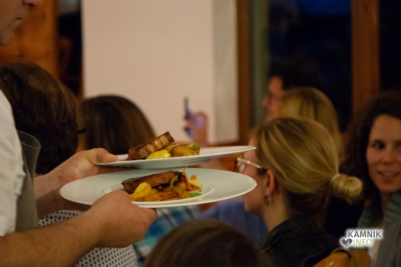 Poslušalci so uživali ob domačem vinu in (nekoliko manj) domačem pivu ter se zibali in si v brk popevali tiste naše, domače skladbe, ki ogrejejo srce in dušo. Že nekoliko lačni so obiskovalci ob prepevanju malega avta, ki je žal premajhen a še vedno gre v Ljubljano dočakali tudi pravo domačo pojedino s pečenimi rebri, krompirjem in ohrovtom, ki je zaokrožila rdečo nit večera domačnosti.