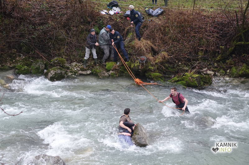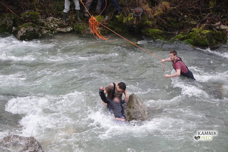 Gasilci PGD Kamniška Bistrica, ki iz bližnjega gasilskega doma k sreči niso imeli daleč, so se, skupaj s policistkama PP Kamnik, nemudoma pognali v ledeno in deročo vodo ter se, spričo močnega hudournega toka, s precejšnjimi težavami prebili do dekleta, ki se je skale oklepalo domala z zadnjimi močmi. Eden izmed gasilcev je obnemoglo dekle prijel in držal vse dotlej, dokler njegovi kolegi, ki so se jim medtem pridružili pridružili tudi gasilci PGD Kamnik, niso s pomočjo lestve postavili nekakšnega zasilnega mostu, preko katerega so prezeblo in bržčas tudi že precej podhlajeno dekle, na nosilih varno spravili iz reke.