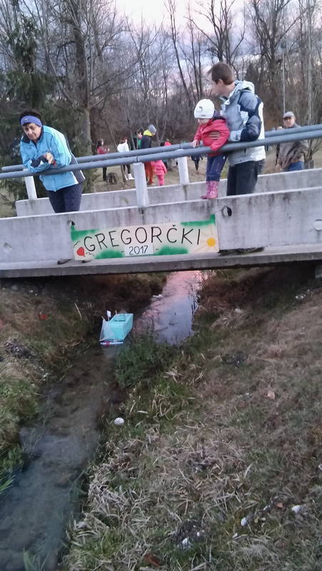 Petošolci so pri neobvezen izbirnem predmetu tehnika, iz lubja, mahu, vejic in storžev izdelali ladjice in splave. Pridružili so se nam še nekateri učenci, ki so gregorčke izdelali doma. V spremstvu staršev, učiteljic in podravnateljice smo gregorčke, ponosno odnesli k potočku, kjer smo jih spustili in doživeli čarobni večer.