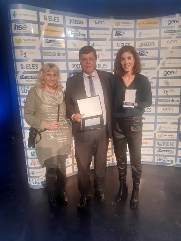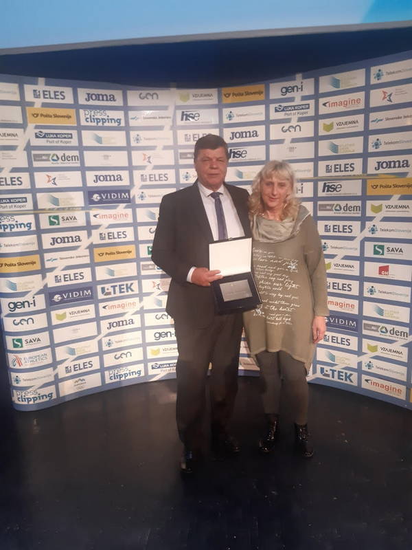 Dušan Papež, prejemnik srebrne plakete Atletske zveze Slovenije, Neja Kršinar (KGT Papež) prejela priznanje za rekord v cestnem teku na zaključni slovesnosti Naj atlet/atletinja v Novem mestu