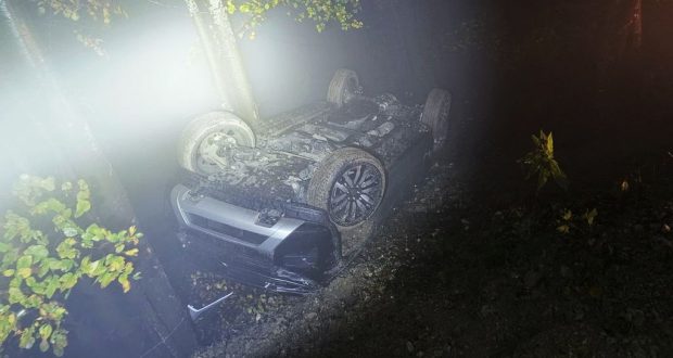 Nekaj pred polnočjo pa so bili gasilci PGD Kamnik obveščeni o še eni prometni nesreči, do katere je prišlo na cesti pod Veliko planino, in sicer med planino Kisovec in Malo planino, kjer je s cestišča zdrsnilo vozilo in se obrnilo na streho.