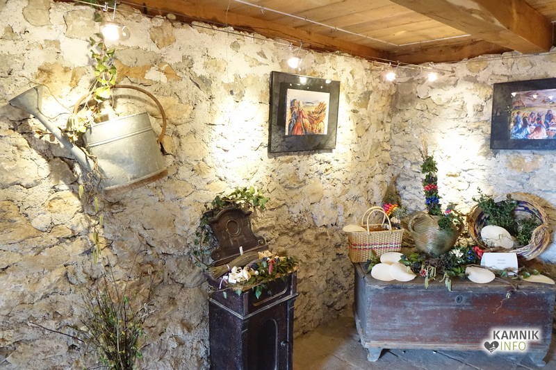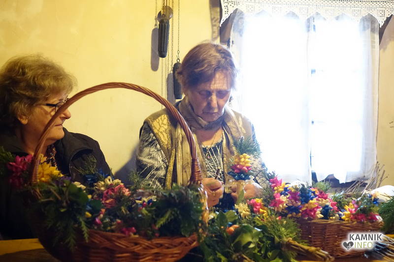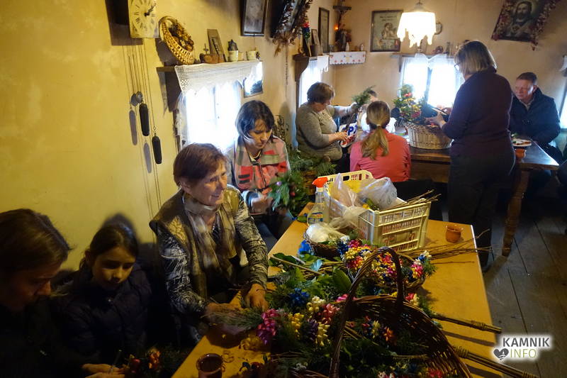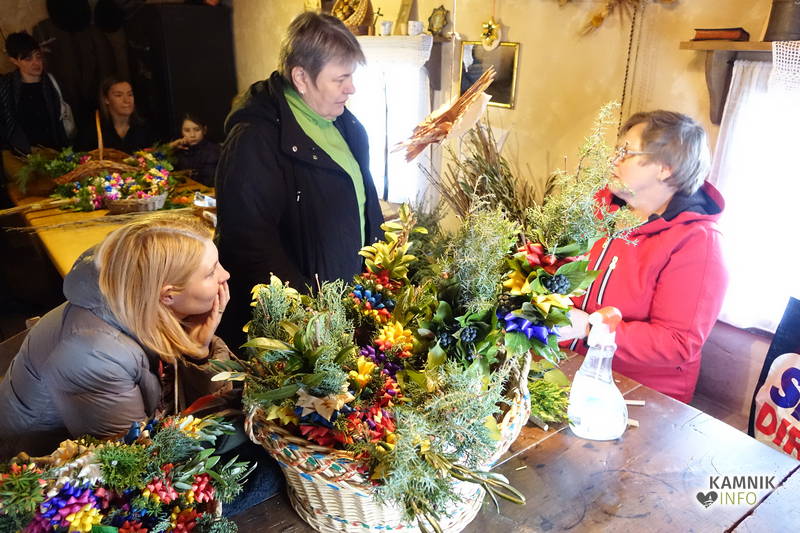 V osrednjem prostoru, “hiši” ste si lahko ogledali izdelovanje butaric s strani domačink, palovčank; Bernarde Kvas, Fani Sovinjšek, posebnost nedeljskega popoldneva pa je bila priprava in peka velikonočnih oblatov – hostij, ki jih je pripravljal Jože Bokal iz Dolskega. Oblati so opresen oziroma nekvašen kruh, pripravljeni iz moke in vode. Za peko se uporablja poseben pekač, ki pusti v končnem izdelku odtis Jezusovega monograma. Prvotno je oblate pekel mežnar in si s tem prislužil kakšen dodaten denar za preživetje. V okolici Kamnika ohranjajo ta običaj v Tuhinjski dolini in v Šmarci.