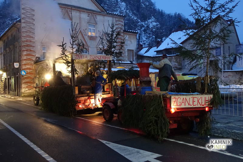 Maškare in maškarice so na Glavnem trgu tudi zaplesale, nekako ob koncu rajanja, pa so, kot že zadnjih nekaj let zapored, zabelile maškare iz Stranj oz. fare sv. Benedikta, ki so tokrat predstavile pravo žganjekuho. Stranjski “šnopsarji”, ki so s svojo žganjekuho kar pošteno zadimili Kamnik, so tudi tokrat poželi kar nekaj pozornosti, še posebej zaradi tega, ker so znali del svojega prehlad in mraz preganajočega “pridelka” razdeliti tudi med druge maškare in njihove opazovalce, kot edini pustni voz, ki zadnja leta redno obiskuje kamniško pustno povorko, pa si maškare iz Stranj zaslužijo posebno pohvalo in priznanje za ohranjanje pustnih običajev.