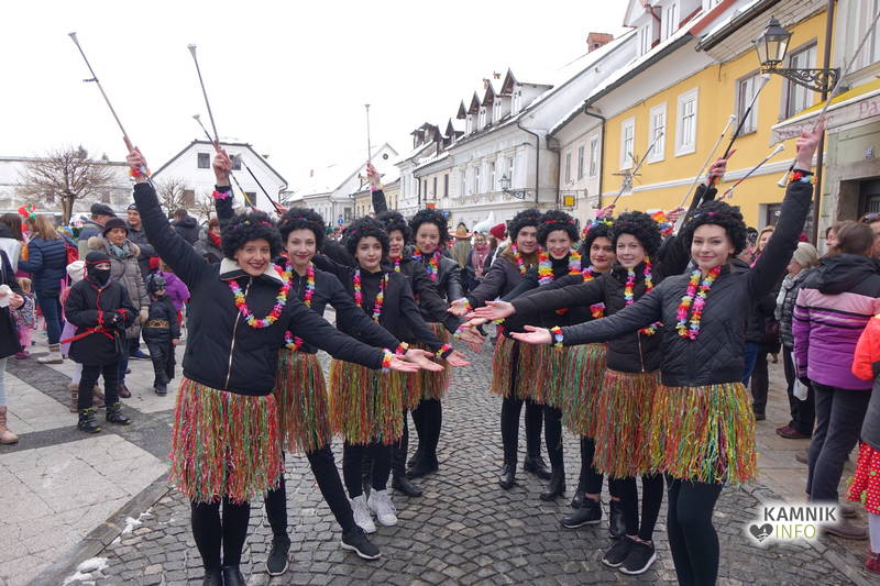 Kot običajno so se maškare in maškarice popoldne začele zbirati pri šutenski cerkvi, nato pa je živopisna povorka pustnih šem, na čelu z mažoretkami in mestnimi godbeniki, izpod šutenskega zvonika krenila protu Glavnemu trgu, kjer so jih čakali krofi in zabavni program.