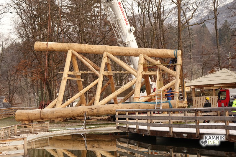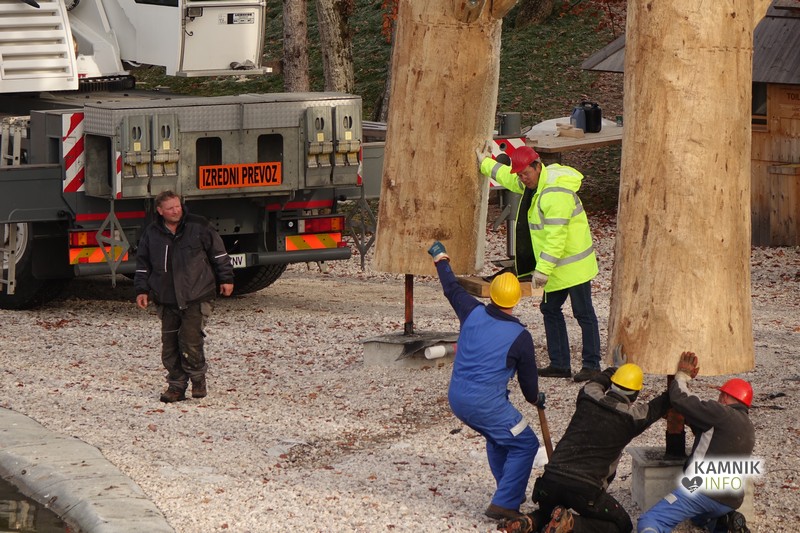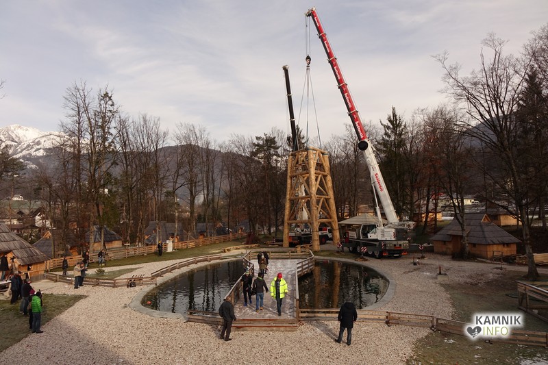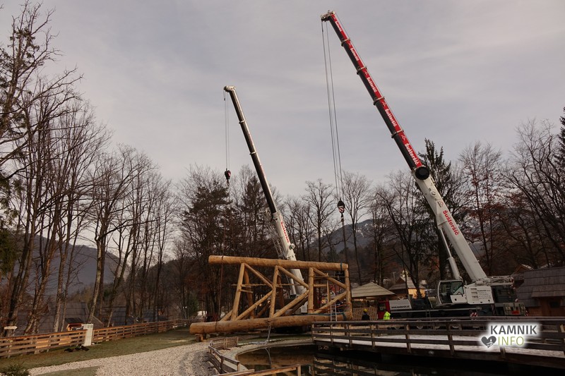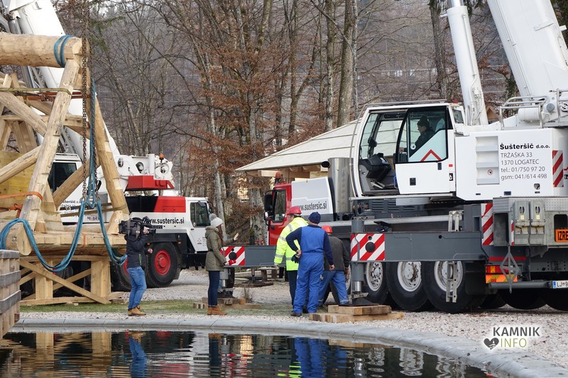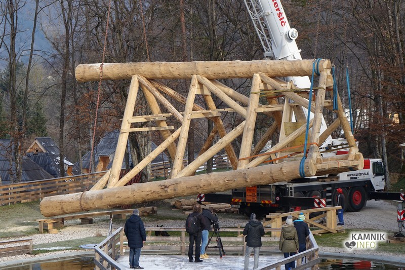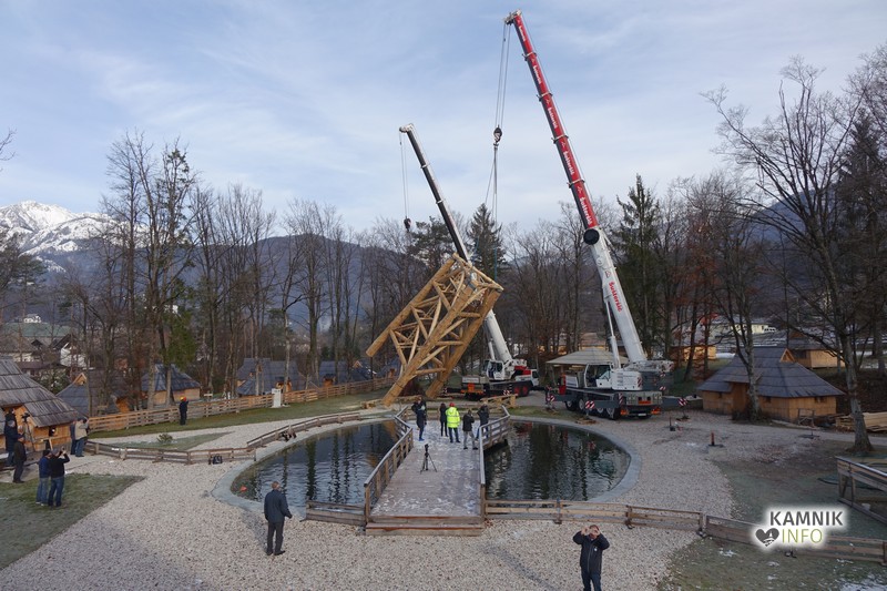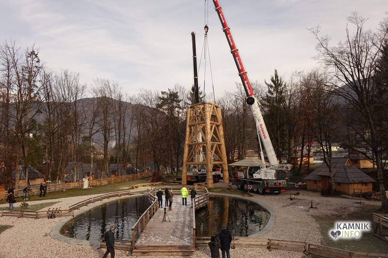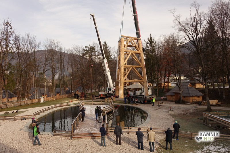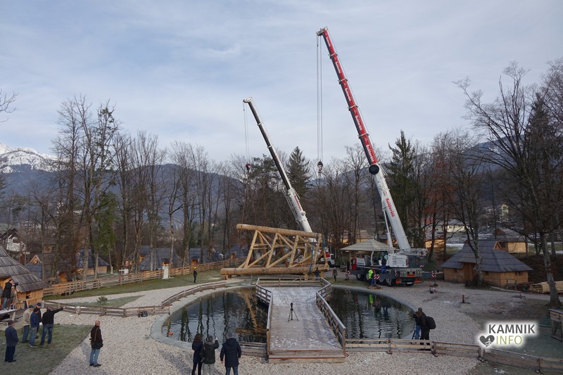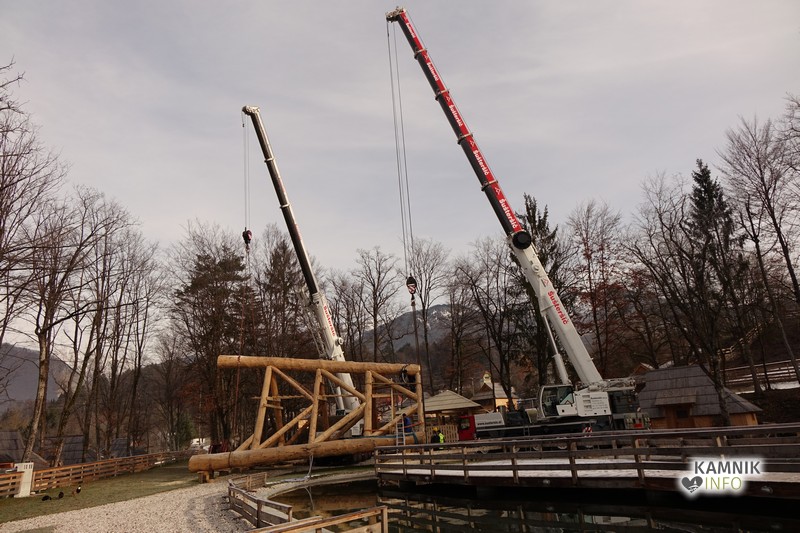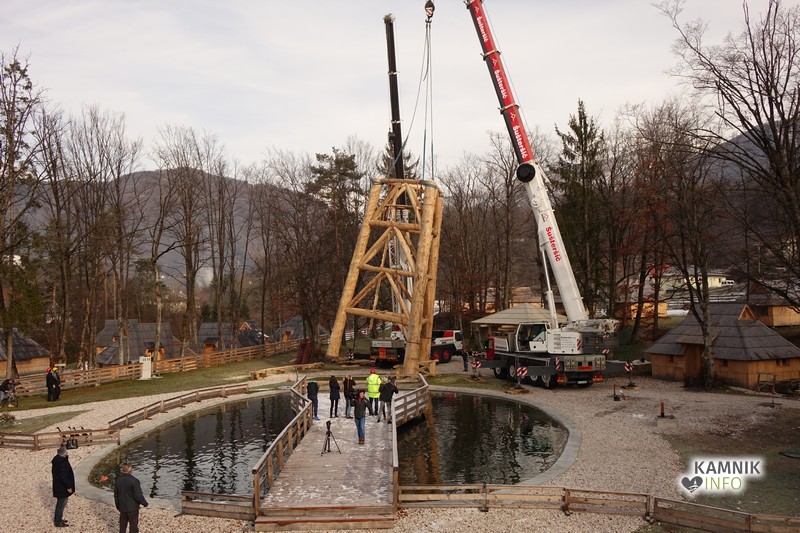 Ob deseti uri so v Eko resortu pod Veliko planino začeli s postavljanjem ogromne lovske opazovalnice, ki naj bi bila največji tovrstni objekt na svetu.
