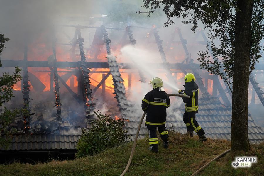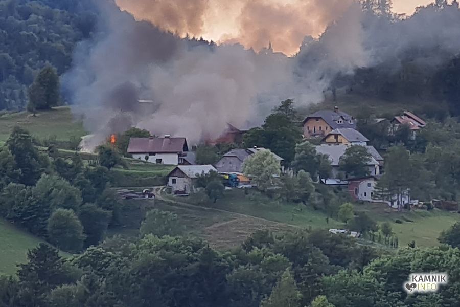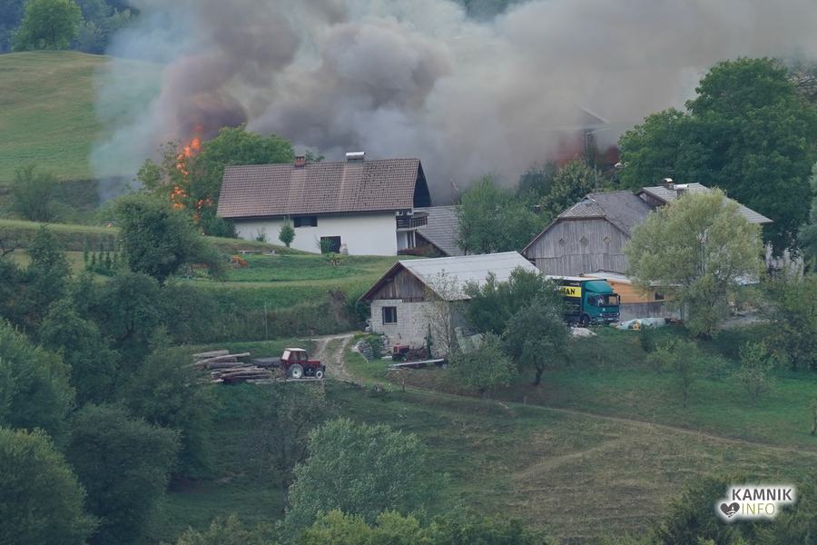Včeraj zvečer, okoli 18.30, je na Velikem Hribu v Tuhinjski dolini, med spravilom oz. skladiščenjem sena, prišlo do bliskovitega in obsežnega požara gospodarskega poslopja, ognjeni zublji pa so se, kljub takojšnjemu prisebnemu ukrepanju domačih in sosedov, ki so takoj začeli z gašenjem in reševanjem kmetijske mehanizacije, domala v trenutku razširili na cel objekt, ki je bil poln suhega sena.