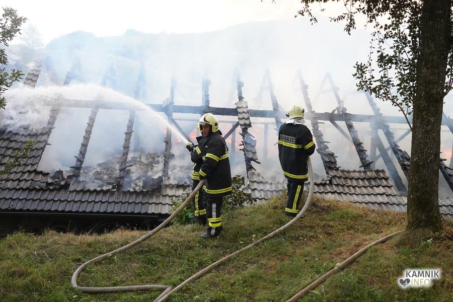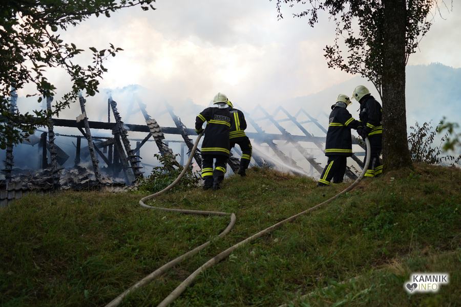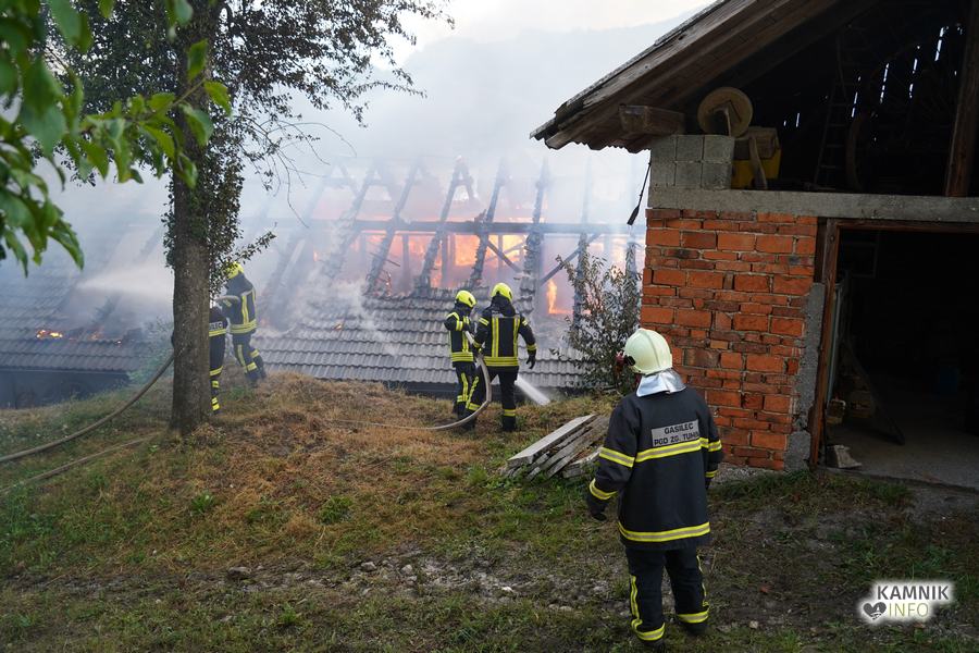 V gašenju sinočnjega požara gospodarskega poslopja na Velikem Hribu, ki je trajalo vse do današnjega jutra, je sodelovalo 91 gasilk in gasilcev, pri gašenju pa so pomagali tudi domači, sosedje in delavci Komunalnega podjetja Kamnik.